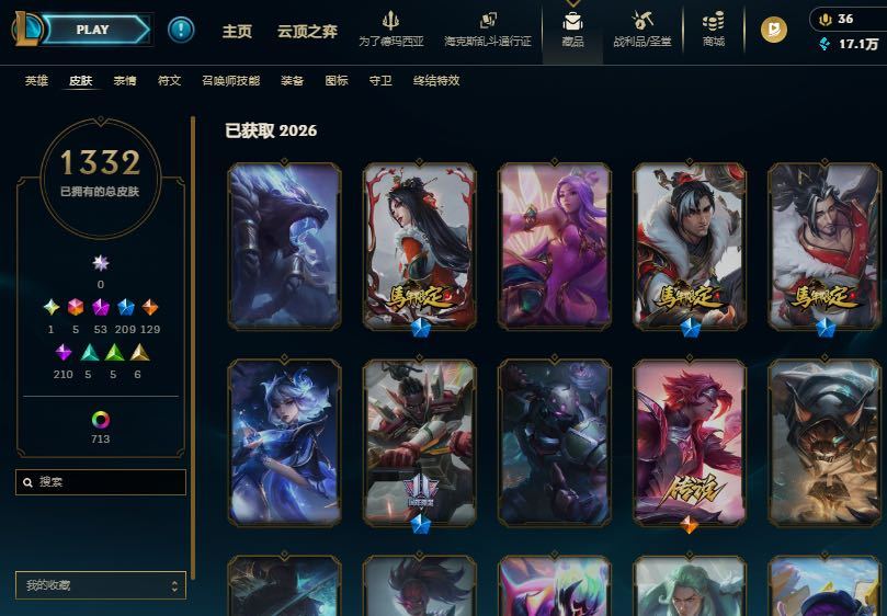 1500皮肤❤️T1冠军签名全套❤️全至臻海克斯❤️全年限周年❤️元老议会