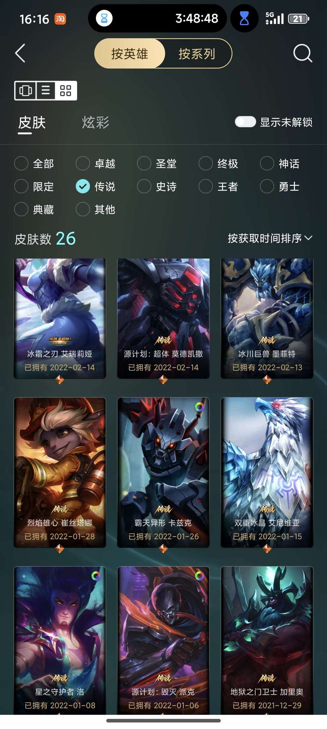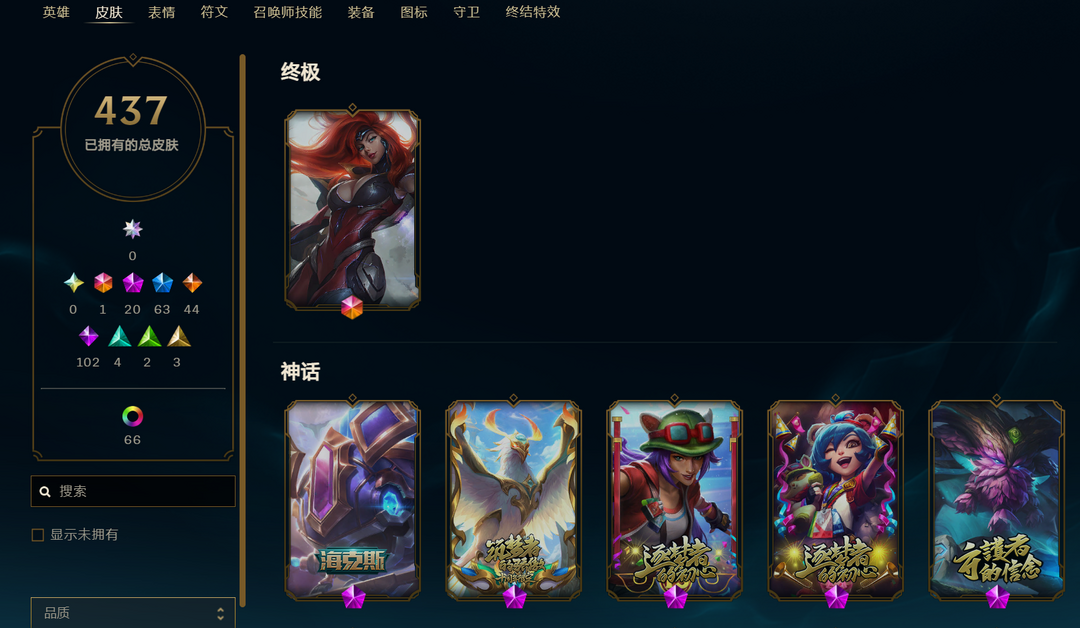 全英雄账号 海克斯鳄鱼、梦魇、轮子妈、吉格斯加各类至臻限定、周年限定、冰雪节限定、春节限定皮肤若干