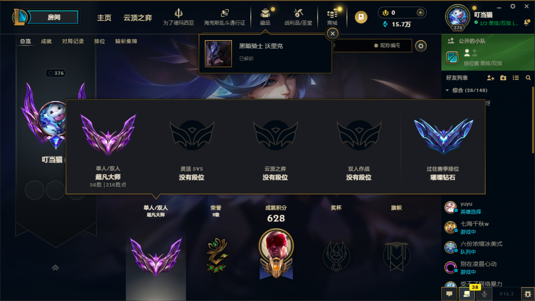 S16大师可排位❤️单双大师❤️ID可查❤️高分高端局体验❤️艾欧尼亚❤️带妹首选高隐藏分多赛季高分