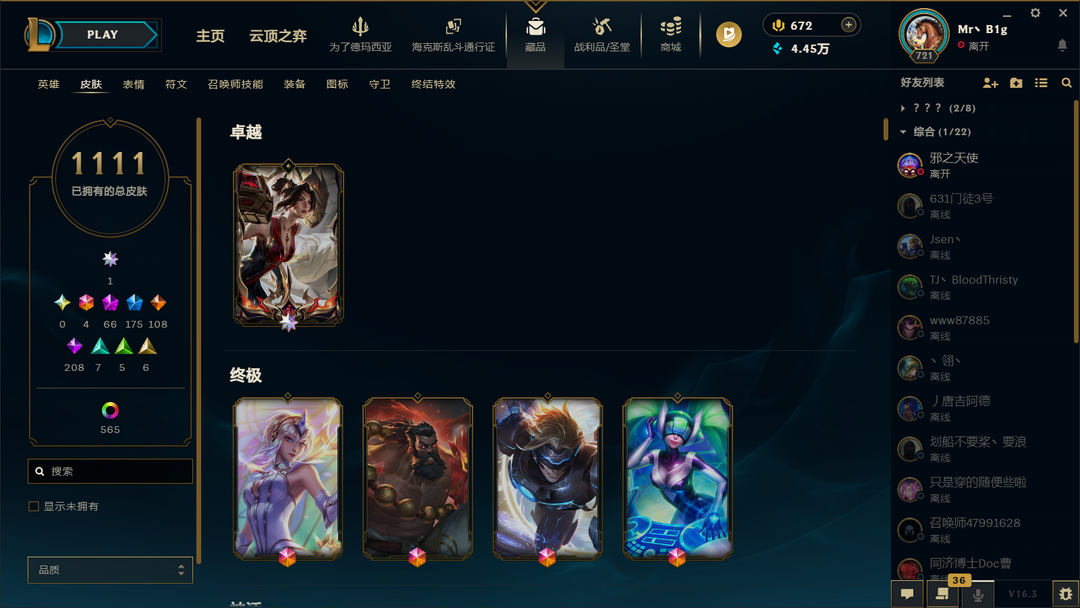 【联盟一区】至臻海克斯名人堂★全皮1676★原皮1111★炫彩565★各种稀有限定至臻★低段位虐菜