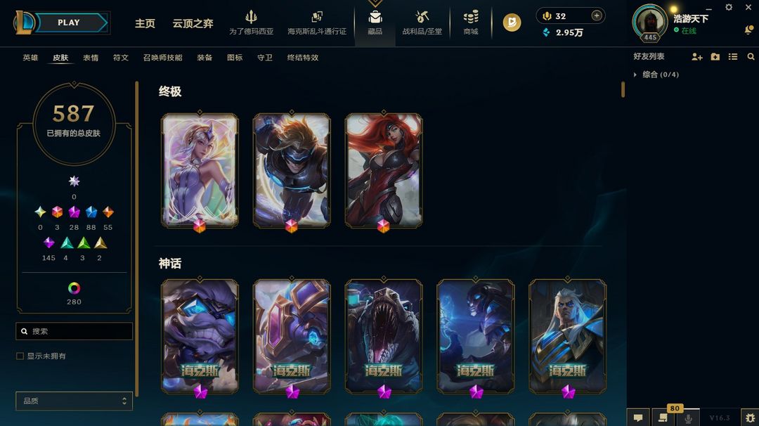 极品皮肤、奖池清空、不朽阿狸、云顶27神话、神话永恩、龙虾、/DRX/兔年/海之歌/灵魂莲花/神龙尊