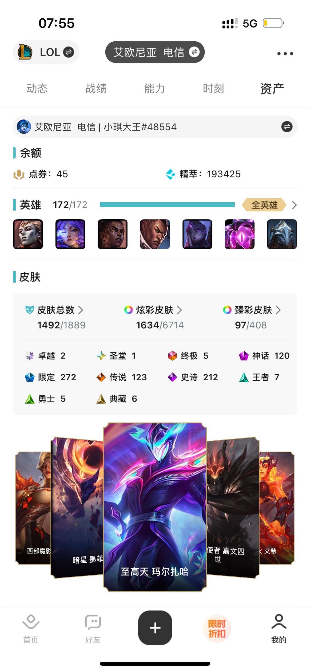 1355皮肤75臻彩神话❤️单双黑铁4❤️EDG冠军套❤️十周年薇恩❤️金卡莎❤️可排位