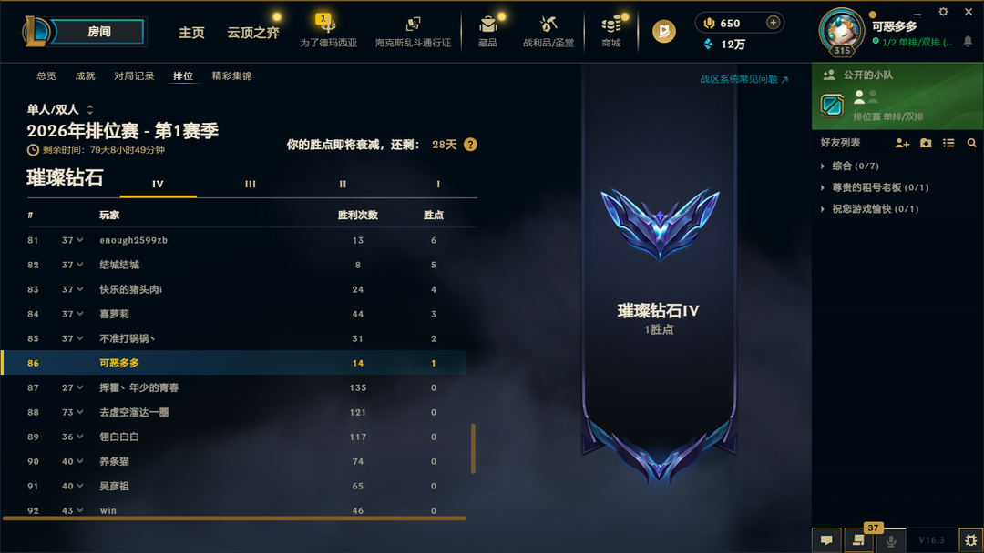 600p妹子号♥至臻♥限定可排位白金