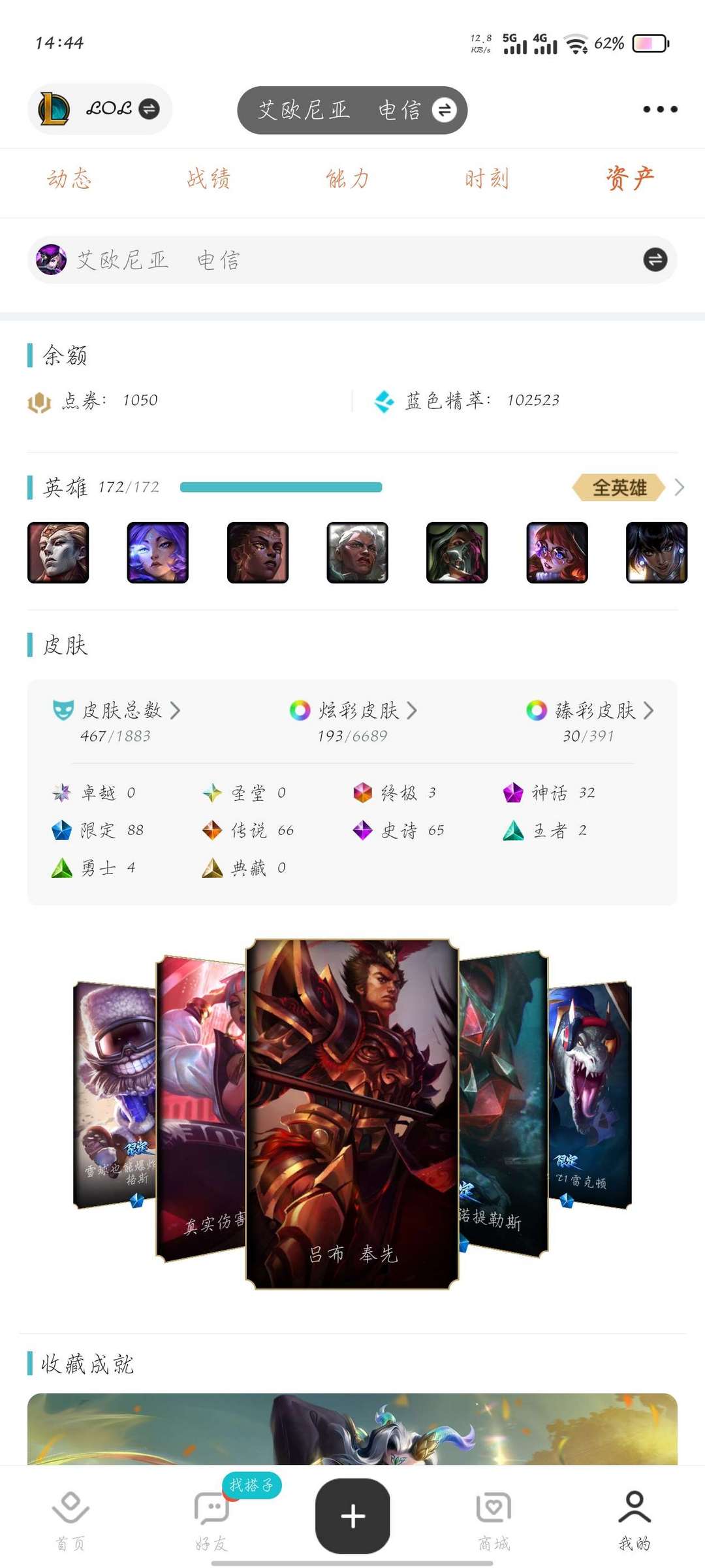 【可排位】⭐500皮⭐467原皮+30臻彩⭐艾欧尼亚⭐实时更新⭐极速上号