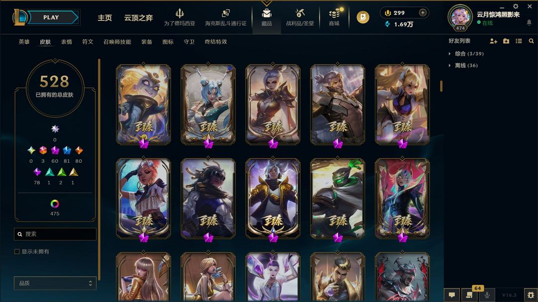 【LOL大王】1000P乄528原皮乄475炫彩乄60神话乄81限定乄西部魔影炽天使永恩