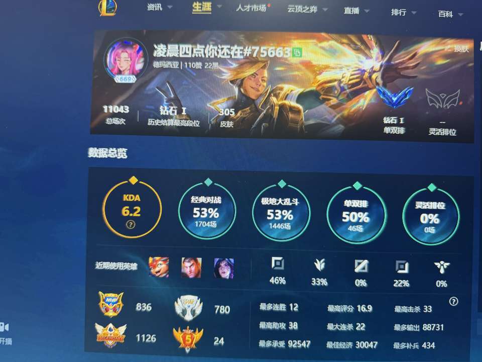 单双黄金灵活白银/匹配炸鱼带妹/600+皮肤23臻彩