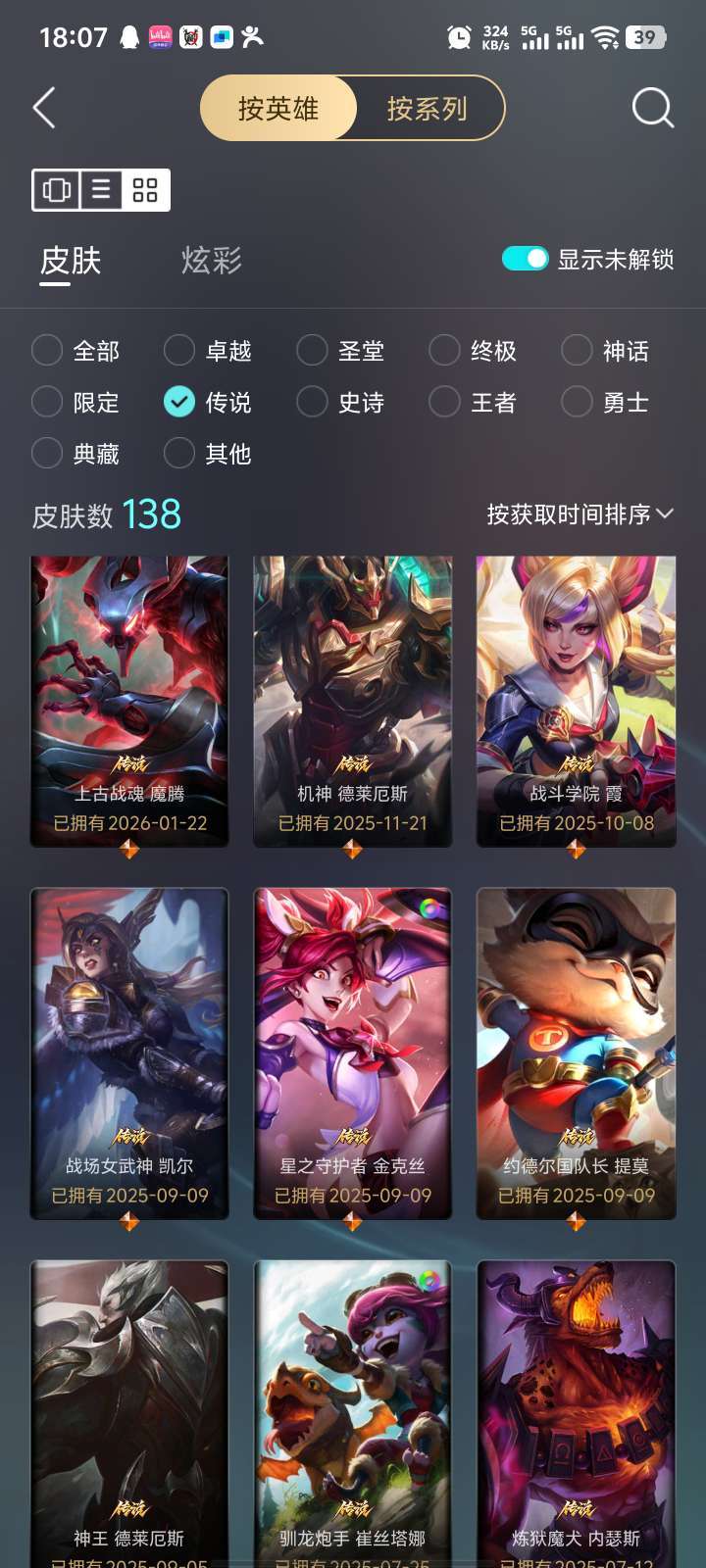 英雄136个。皮肤9个,电一黄金号