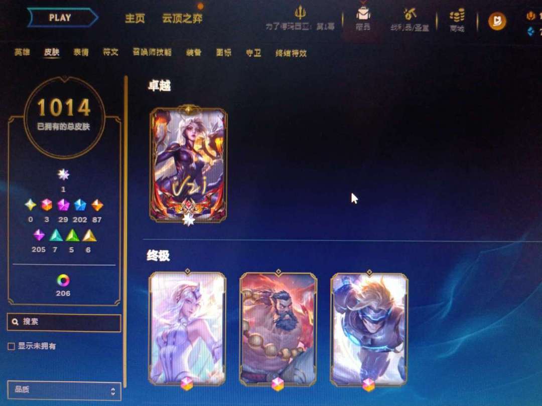 英雄联盟白金分段瑞文洛手男枪等皮肤较多可排位