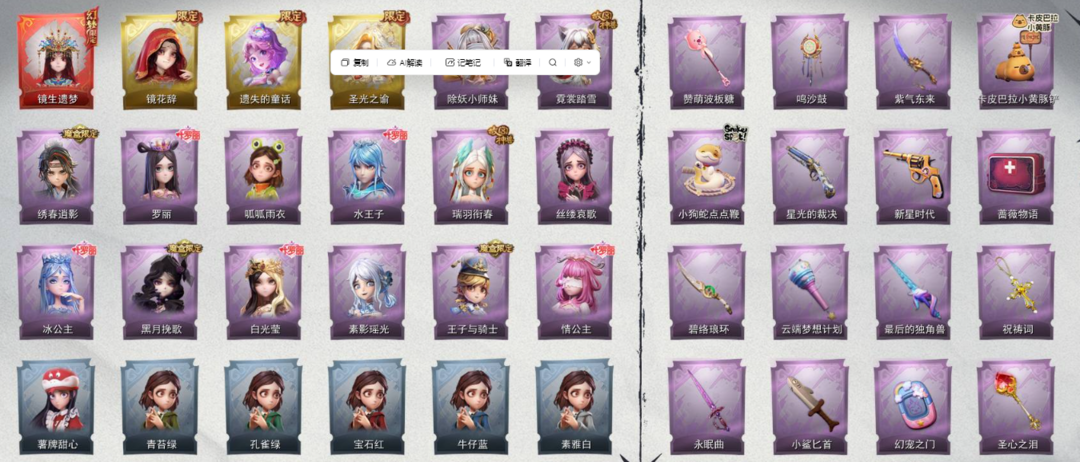 1红3金19紫-镜生遗梦-圣光之谕-遗失的童话-镜花辞-黑月挽歌-泽引山海