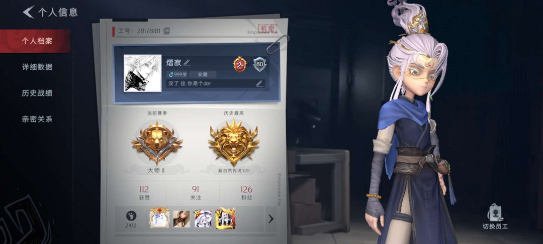 超自然阿念故宫皮裸号超自然传说段位可打排位可加好友