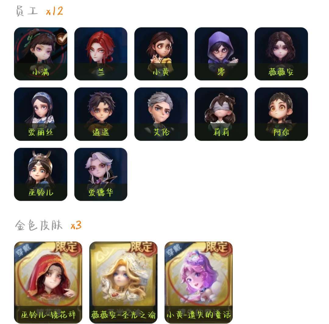 紫色皮肤一个,紫色刀皮一个,6个员工