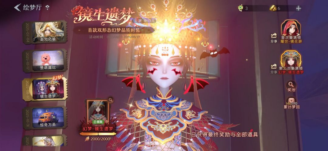 【满氪莲华渡晶澜灵翼】1幻梦5金6魔盒27紫 千夜星谕非遗傩戏兔宝美妆奶茶车皮蜜蜂线索【商城服饰全清