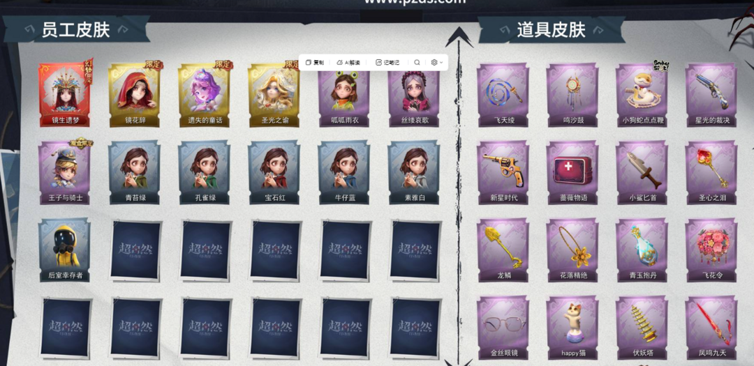 3金18紫⭐青丘一梦⭐赤练将军⭐镜花辞⭐镜生遗梦全道具⭐全魔盒⭐黑月挽歌⭐王子骑士