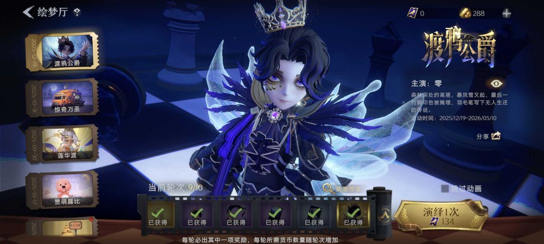 渡鸦公爵抽满✨千夜星谕✨傩戏联动时装✨莲花渡✨镜生遗梦✨1红6金27紫33道具✨累充翅膀✨全皮