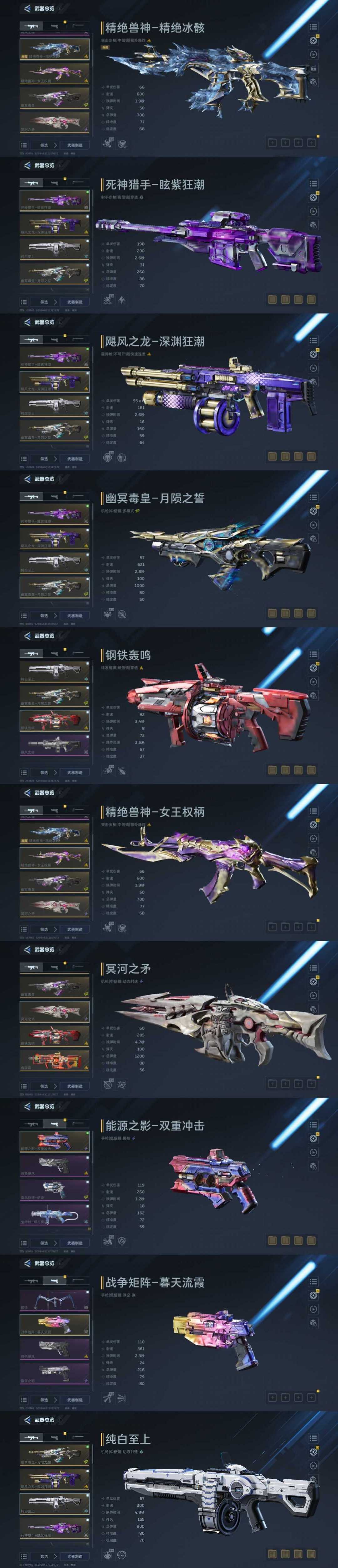 出刀免单⭐精绝兽神⭐冥河之矛⭐死神猎手⭐死神镰刀⭐战争矩阵⭐钢铁轰鸣⭐纯白至上⭐春震雷⭐超级复合弓