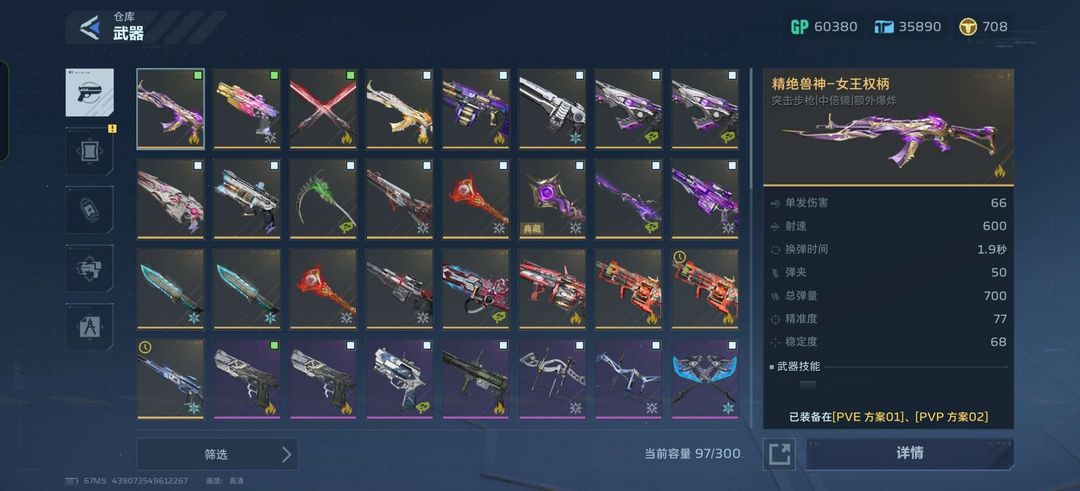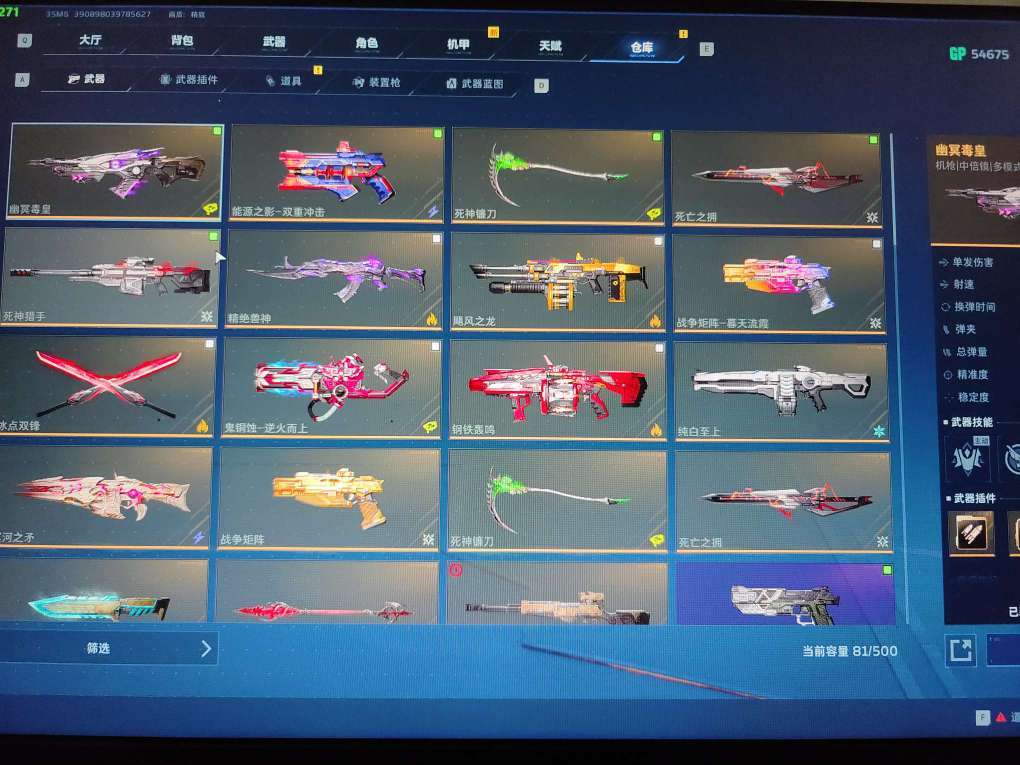 逆战未来:S0金武毕业,S1金武毕业,精绝女王,血怨典藏,插件全满。