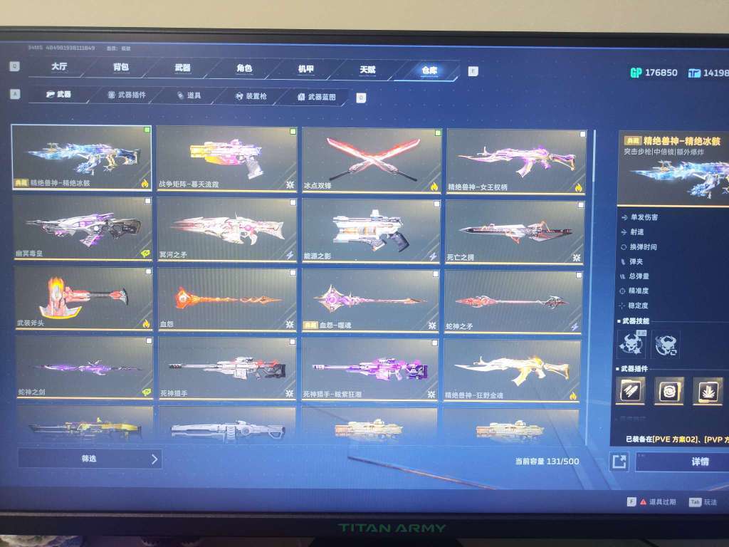 逆战未来 账号出租武器多 猎场毕业 塔防毕业 插件全 装备齐全 毒皇 死神 龙 能源之影