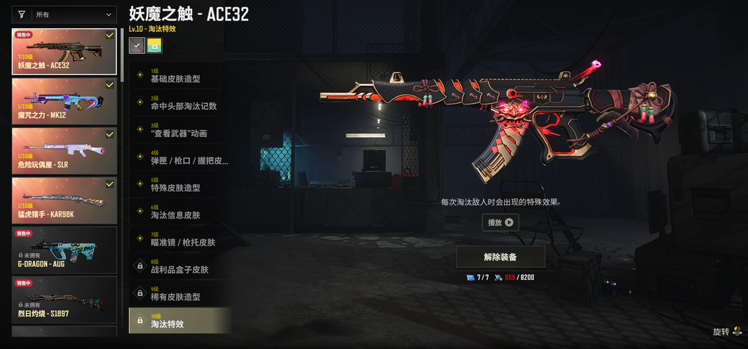 二级密码456789✅⑩级妖魔之触ACE✅①级猛虎猎手98K✅①级危险玩偶屋SLR✅青花之力M762