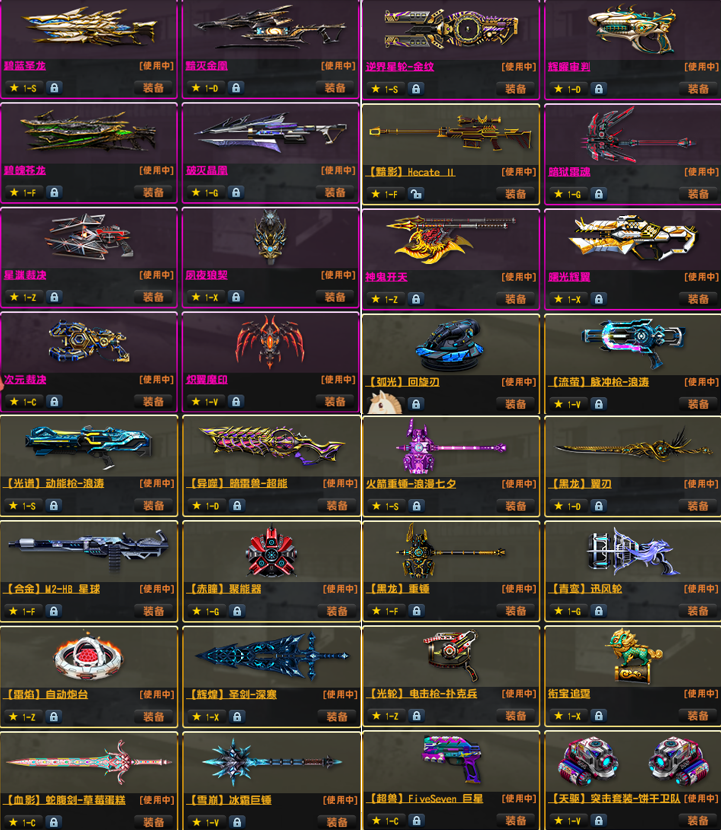 怂●紫钻过期●双黯特典加特林特典狙黯火●兔神龙神白洞天使雷●光束套闪电套重铸怀旧加特林套去雾
