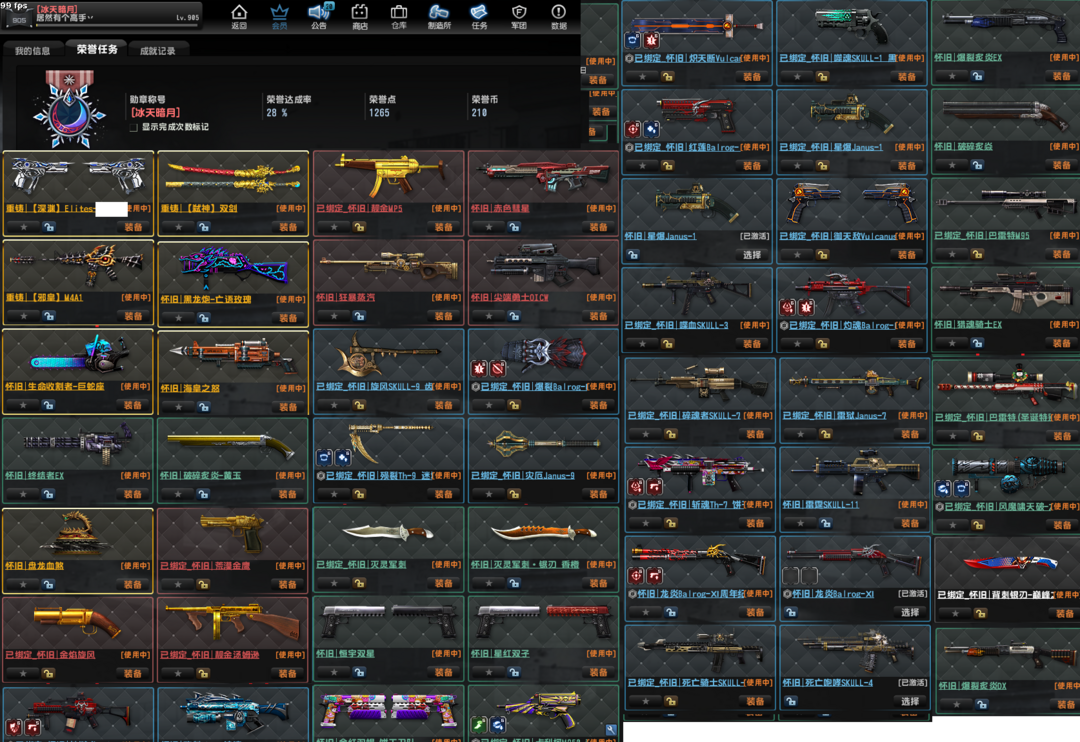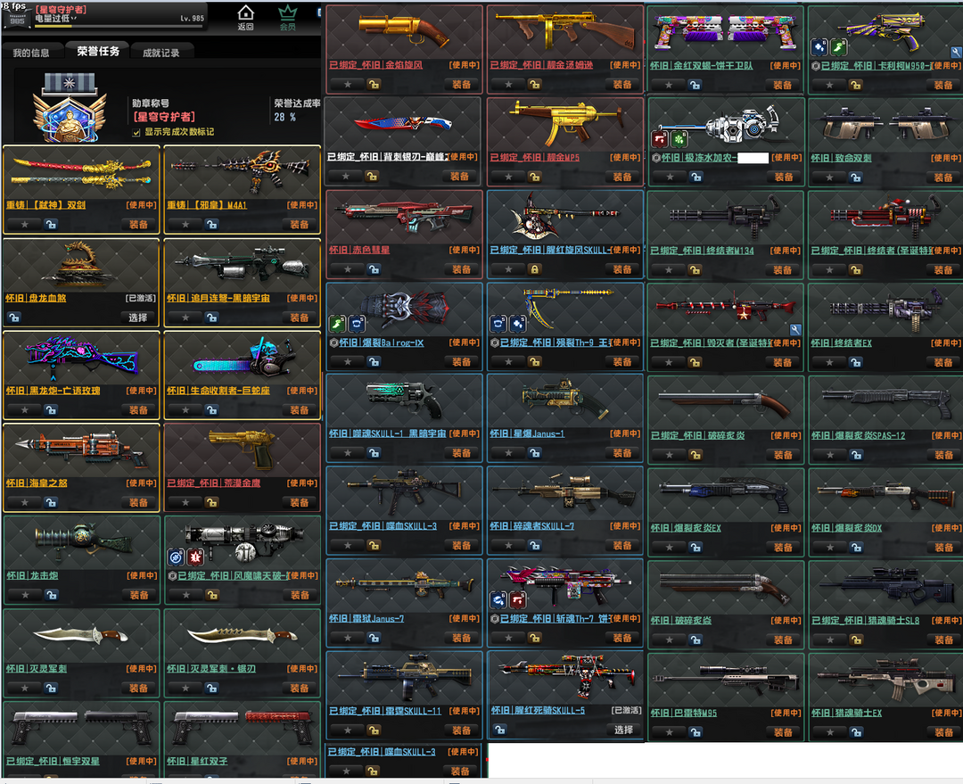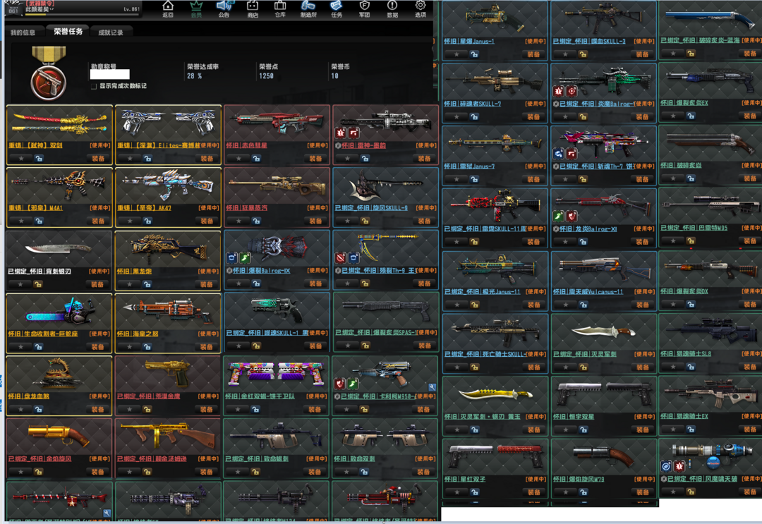 已经去黑雾,重铸雷神怀旧邪皇圣帝,电锯,盘龙。海皇。黑龙炮、旋风、金红,生化Z感染,3-21赛季悬赏