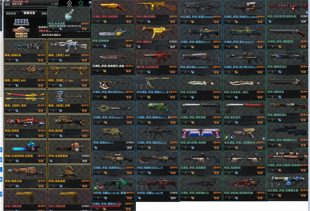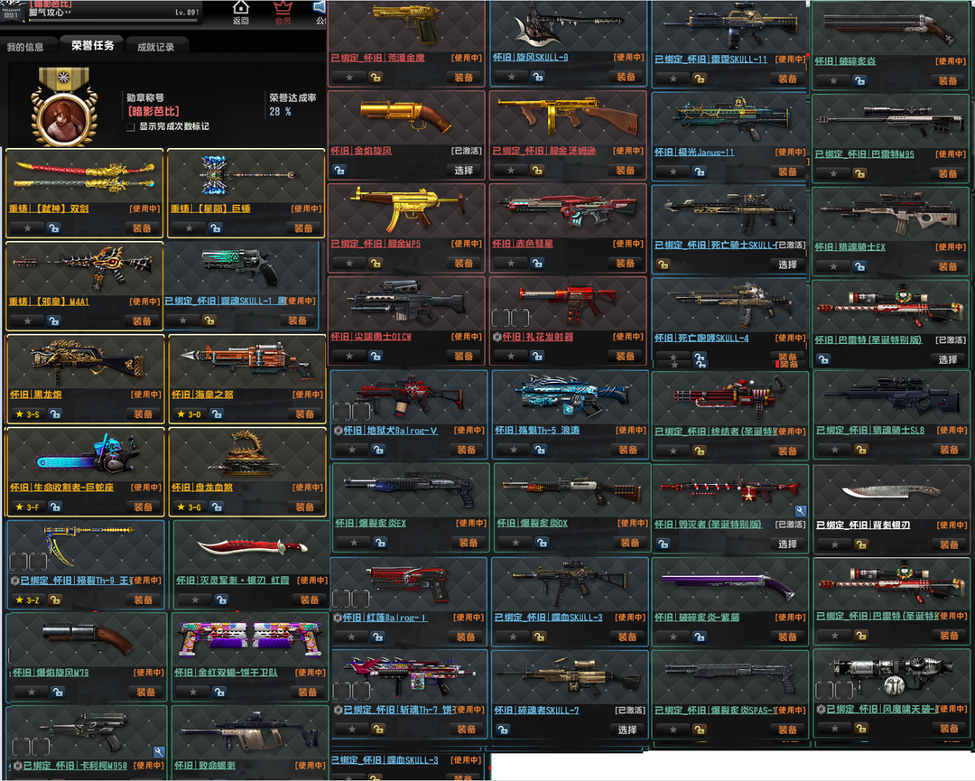 已经去黑雾,重铸弑神双剑,怀旧邪皇圣帝,电锯,盘龙血煞。海皇之怒。黑龙炮、旋风、金红双蝎,赛季悬赏