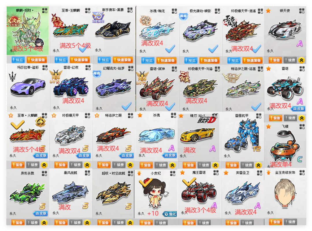 特惠_冰凤 / 玉麒麟⭐三皮爆雷=幻夜十阶⭐赵云麒麟曜影⭐超多满改车+收藏