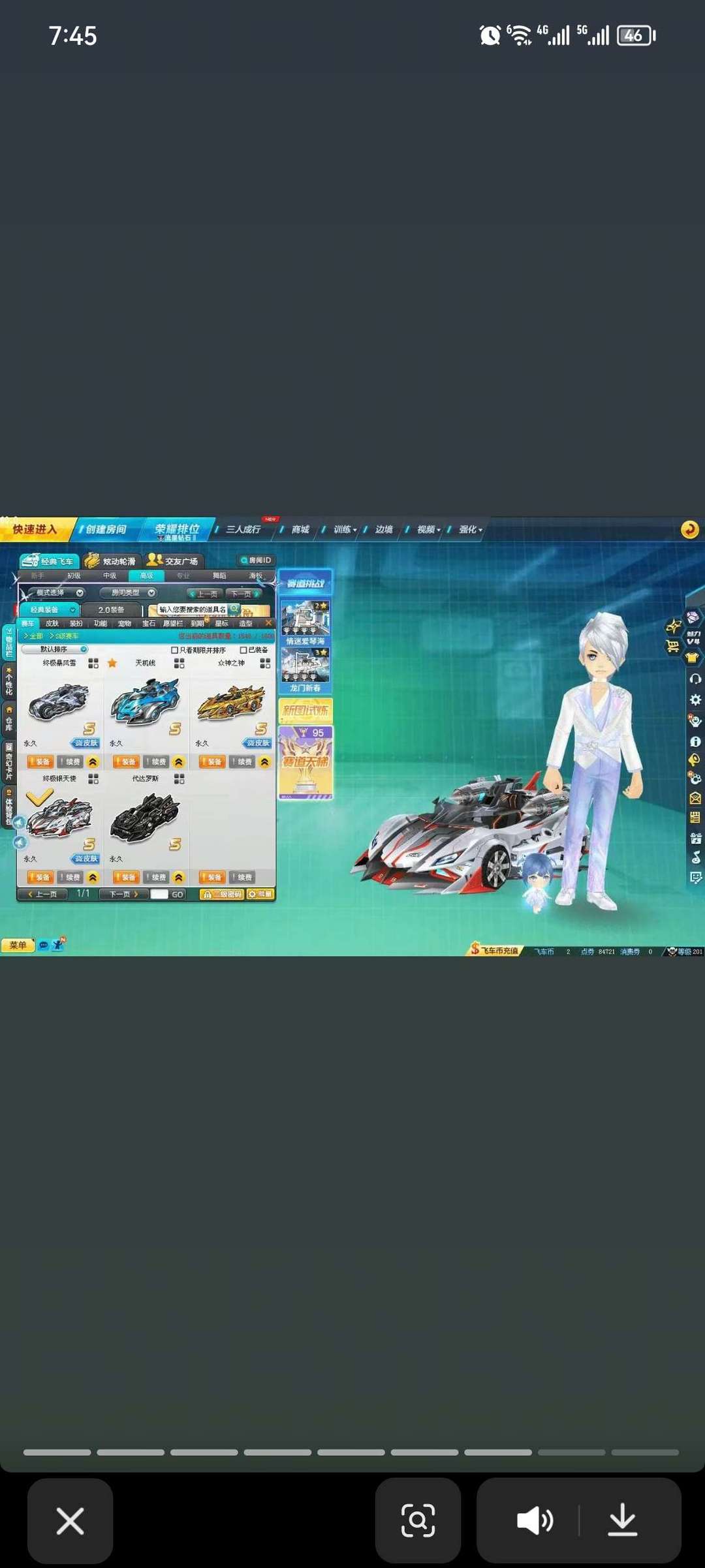 6辆S车还有T2T1四辆车还有创世的服装,可跑排位