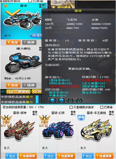 QQ飞车黑域电魔+战争雷洛有T1天数等装备