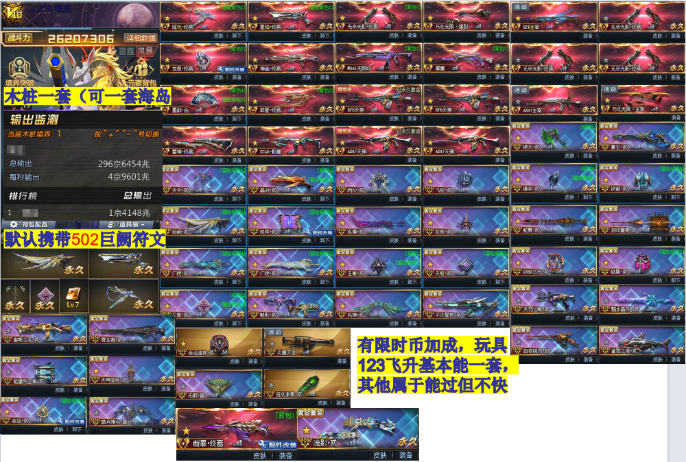 全满配AWM湮灭!终极飞梭贰(红月)!绝版•黑化•比伯!八配绝境幽冥玄天尘羽蛮牙!摇摇乐贰!满配创世
