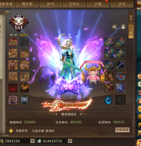 ⭐尊二⭐23战场⭐法师恶霸⭐6700加成⭐316爆伤⭐452皮⭐五神魔⭐双封神