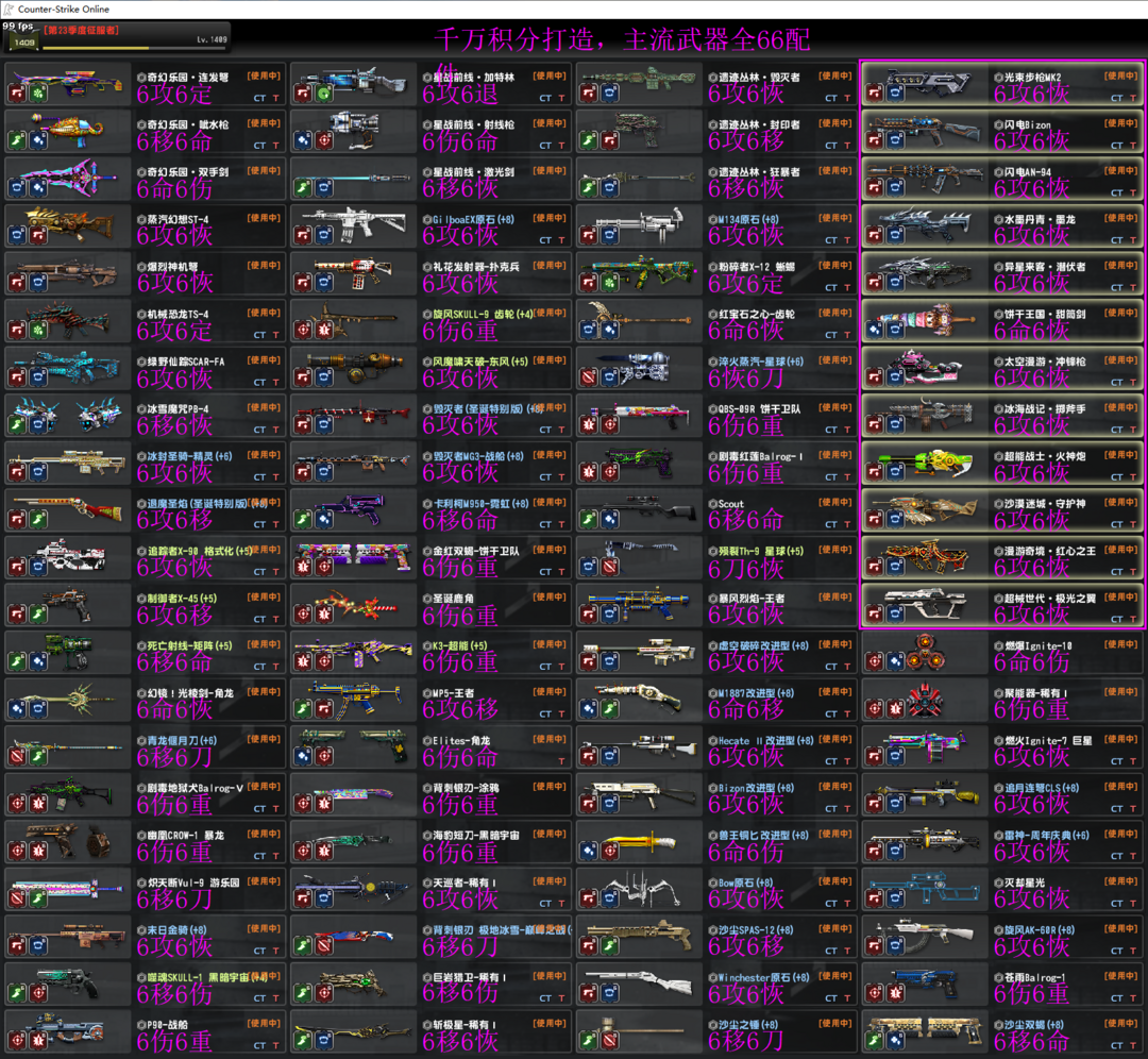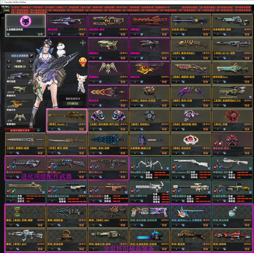 【电信2区,已去黑雾,红宝石会员,适合全模式】(新增怀旧鲨鱼巨锤)——— 【主要武器:黯影、兔神、逆界、鼠神、辉曜、圣翼、神鬼、星核、天巡、战斧、蛇剑、天驱、幽浮、雷焰、混沌、苍穹、圣剑、异噬、合金、猎弓等】———— 【角色50个:级长、向导、海灵、果冻、羊驼、蓝兔、十五、女仆、梦瑶、艾琳、玛丽、霖、奈奈等,大量僵尸皮肤】———— 【悬赏23季,光束2、闪电野牛、闪电94,全66配件。沙尘/原石/改进型/圣诞/十周年,大量极品强化】———— 【请文明素质游戏,不用外挂、辅助、脚本】 【号有不足的地方请理解,祝玩得开心,祝好心情陪伴。遇到问题可随时找号主】