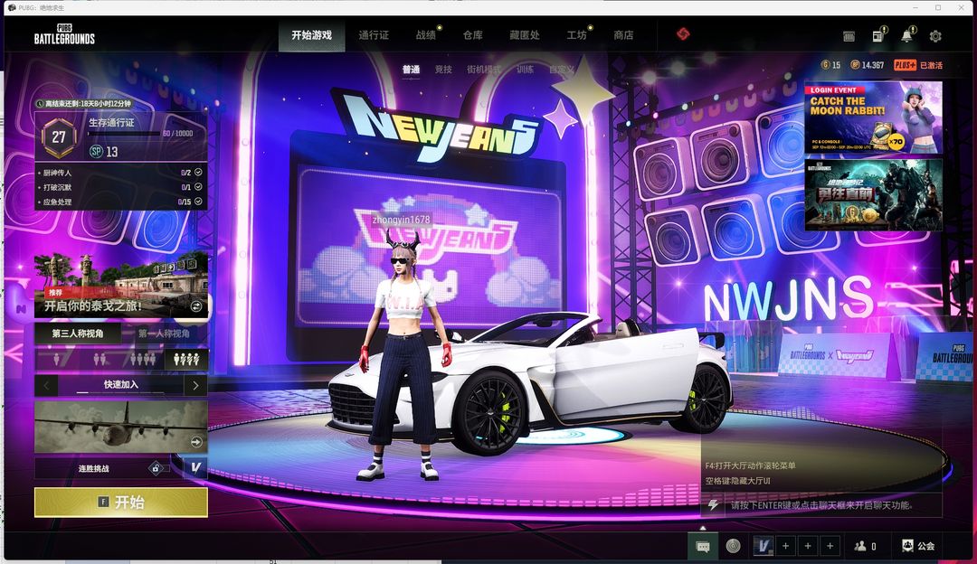 二级密码123456/可排位/布加迪跑车【三成长型-权志龙AUG-无重力MP5-朱雀M416】孙悟空