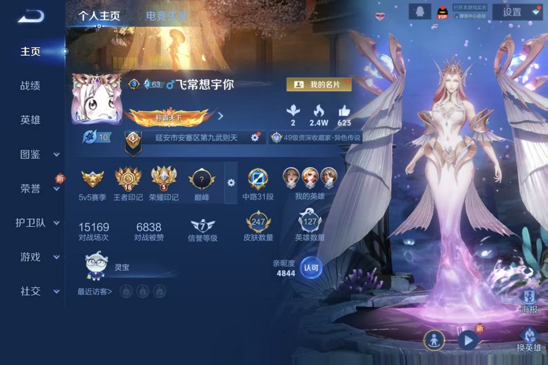 【V8 293皮】李白典藏 基德 马超琥珀 花海 花木兰典藏 满龙限 鹤羽星尊 31传说 打野35段发育33段