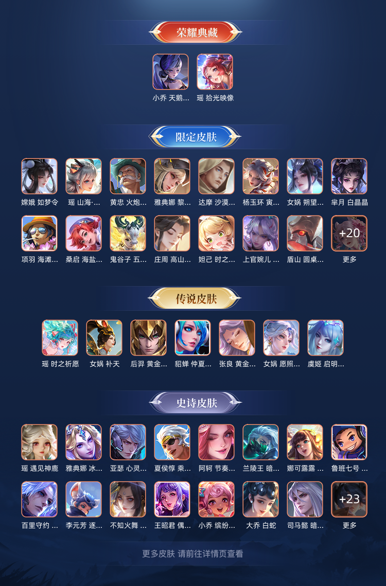 【V8 278皮】贵族等级V8皮肤数量283款含119款非卖限定两典藏.天鹅之梦.拾光映像.瑶时之祈愿+星传说女号