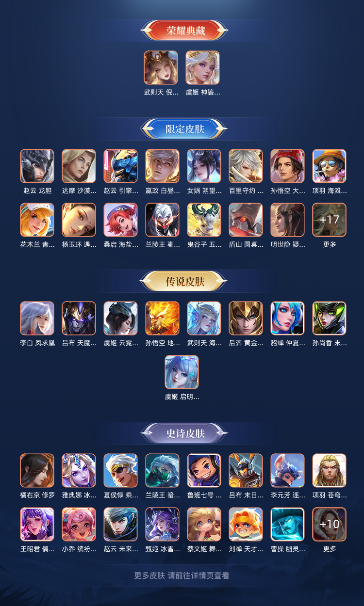 【V10 468皮】6典藏 武则天虞姬诸葛亮程咬金小乔猴子典藏 以及各种限定传说