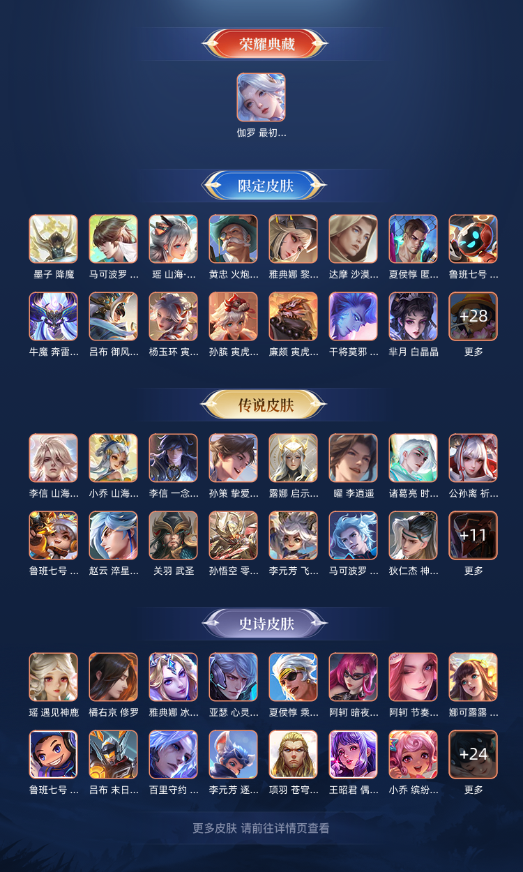 【V8 163皮】【V8账号】荣耀典藏+星月皮肤+限定皮肤+史诗皮肤