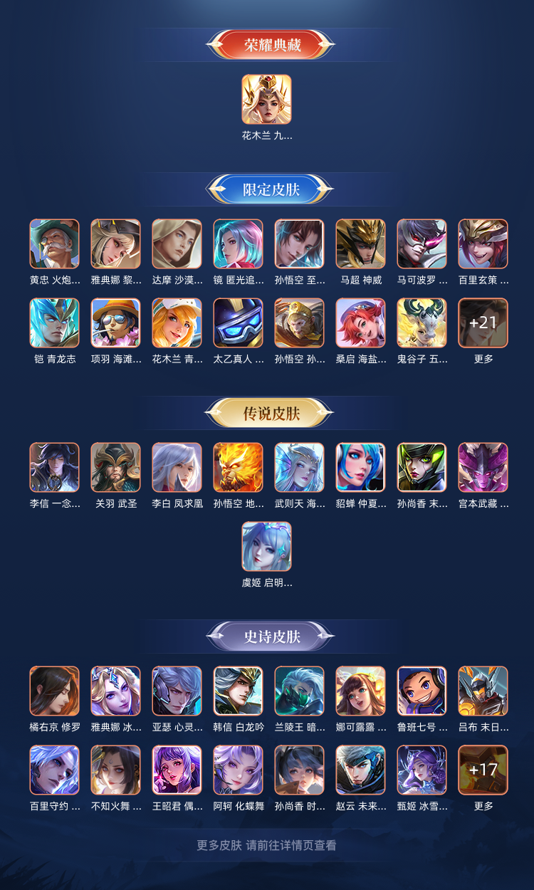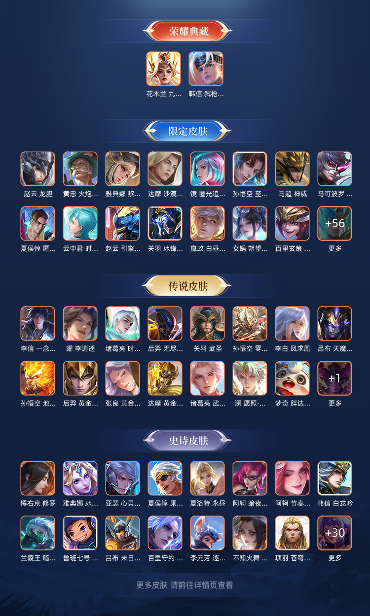 【V5 287皮】野王专属 打野皮肤多多有白虎梅西蜜橘等稀有皮肤有猴子伽罗典藏 FMVP全皮 有武则天