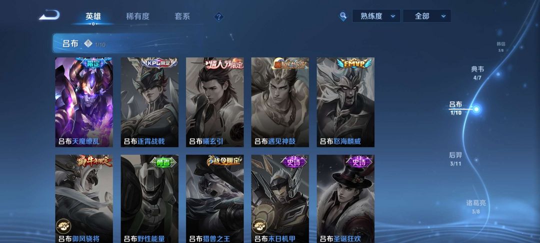 【V7 238皮】两典藏*虞姬*凯澜*年限,女娲*年限-铭文全满史诗皮肤大部分都有三荣耀印记,市标需要的可以租