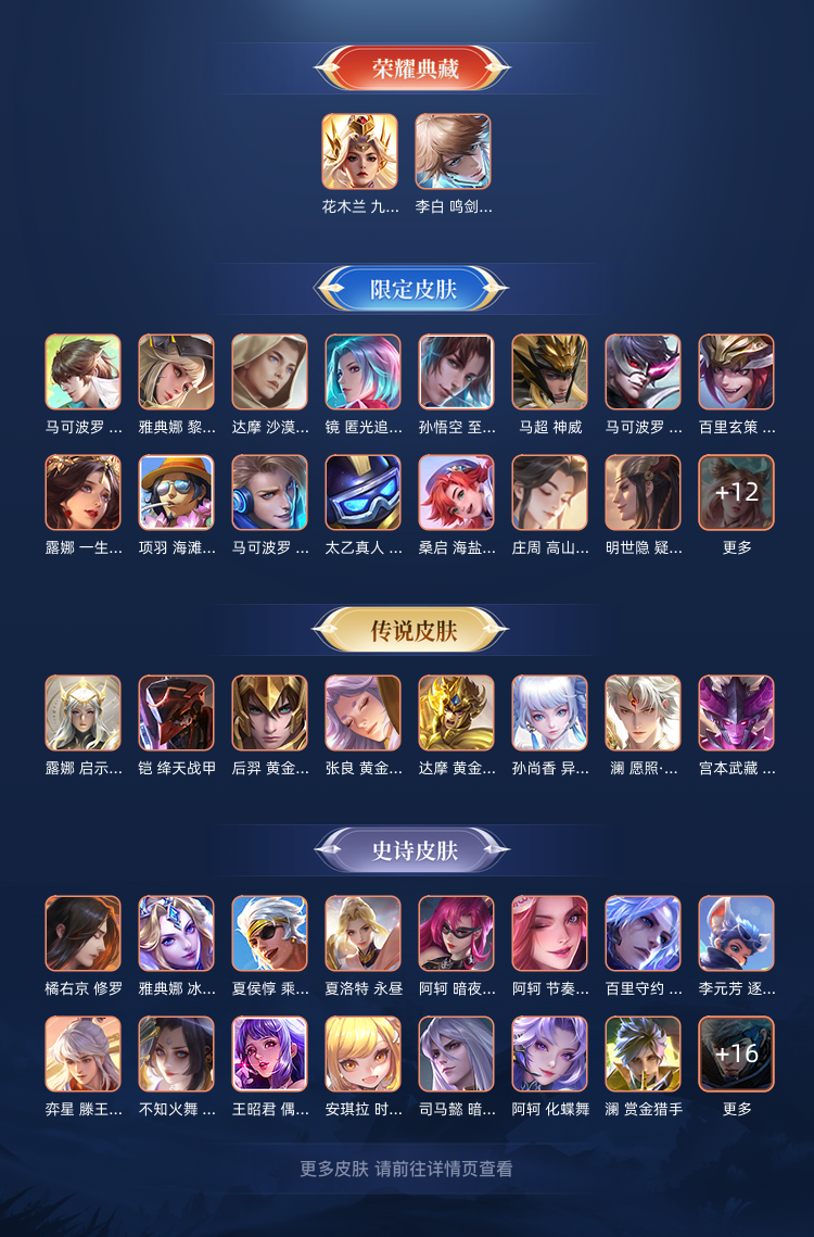 【V7 281皮】李白孙悟空典藏 曜李逍遥 那可露露传说 黄金狮子座 暗影游猎 澜年限 宫本幽冥之眼等