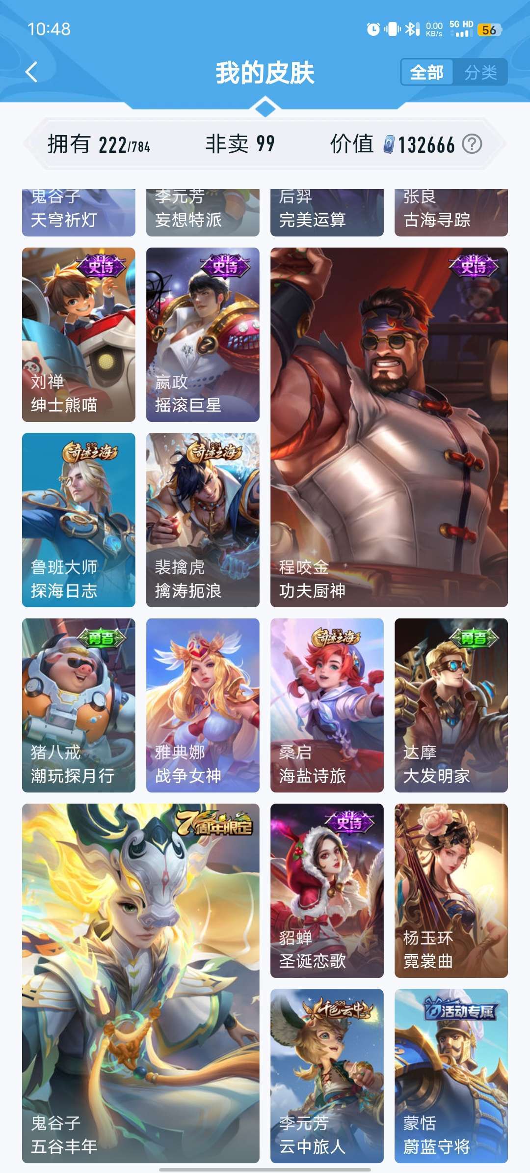 【V10 569皮】马限全皮!李信猴子无双!伽罗珍品!9无双!珍品传说全皮!蛇限龙限全皮!