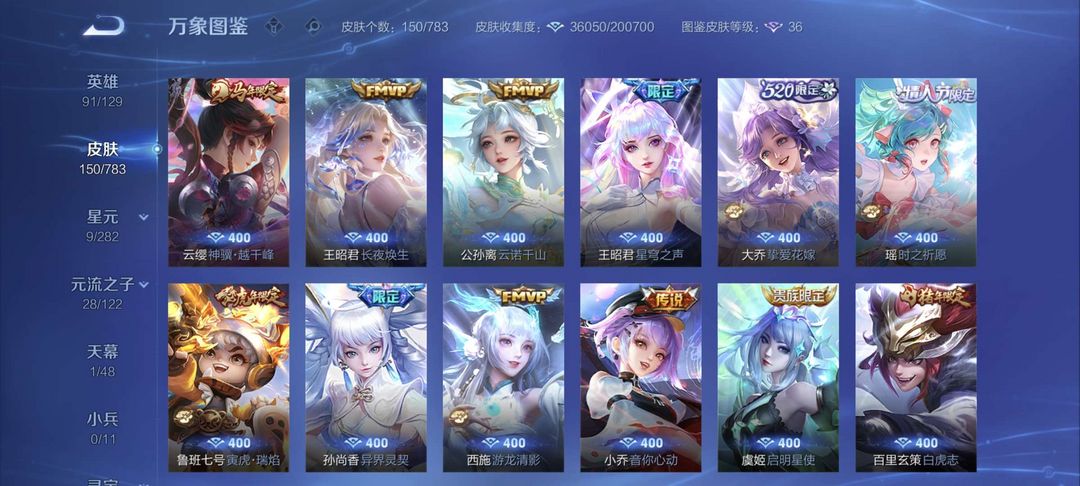 【V5 146皮】王者荣耀皮肤100多,有妲己蛇年限定等好看的皮肤