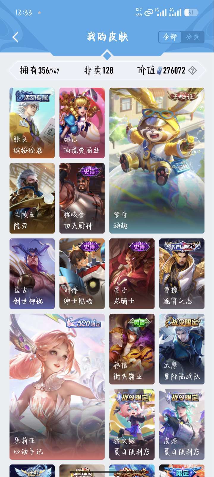 【V9 355皮】一典藏*怪盗基德*神罪*朽木白哉*127英雄*356皮肤