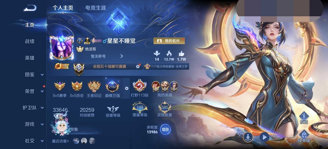 【V10 585皮】在榜小国打野113段.国服【娜可露露】.禁巅峰.巅峰万强1600名闪电框⭐7省标⭐历史5大8小国
