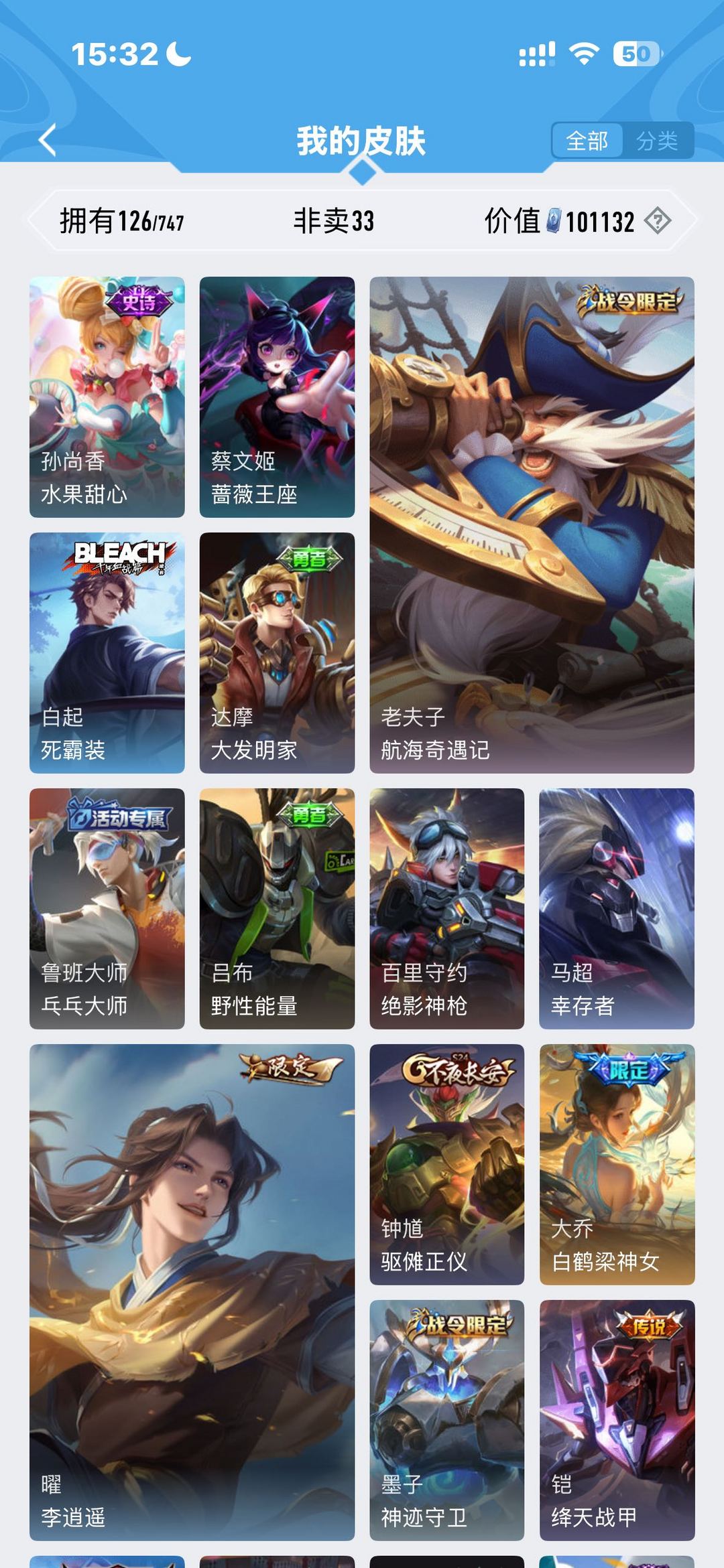 经典系列皮肤基本都有 我为你当初的犹豫买单欲买桂花同载酒 终不似 少年游