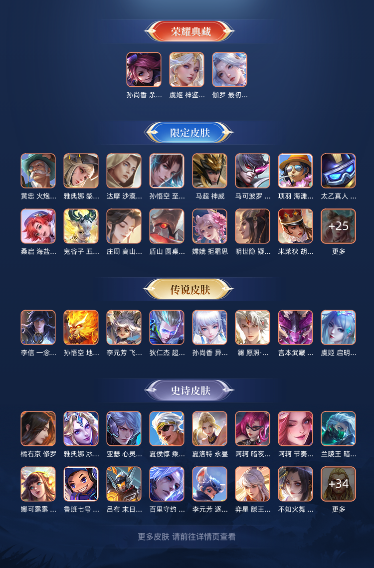 【V8 440皮】伽罗虞姬孙尚香典藏,猴子韩信诸葛亮无双,李元芳全皮肤。四百+皮肤,可排位。