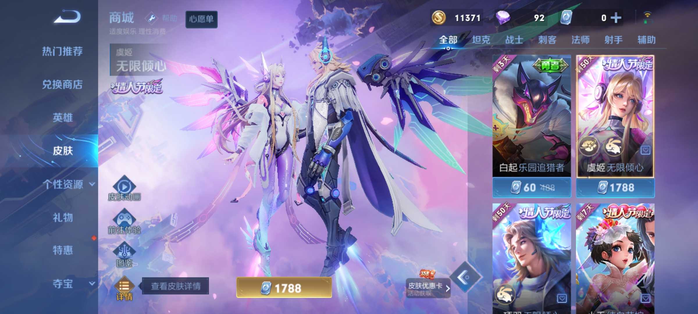 【V10 560皮】贵族V10✨11水✨7星元(有紫瑶)✨68传说✨虎年/兔年✨朵莉亚心动日记/各年限皮肤