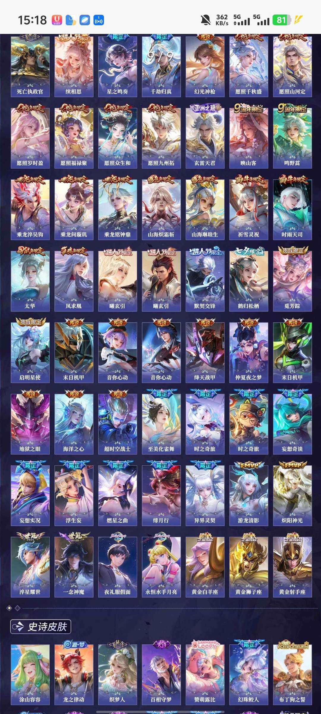 【V8 361皮】53段打野⚡2荣耀典藏⚡2星元⚡白虎志✨李逍遥✨各种限定皮肤,恶意扣分,动用账号物资拉黑。