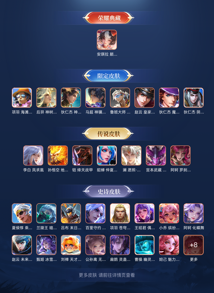 【V10 564皮】甄姬 小乔 瑶等八无双皮多传说 蛇年皮肤基本全有