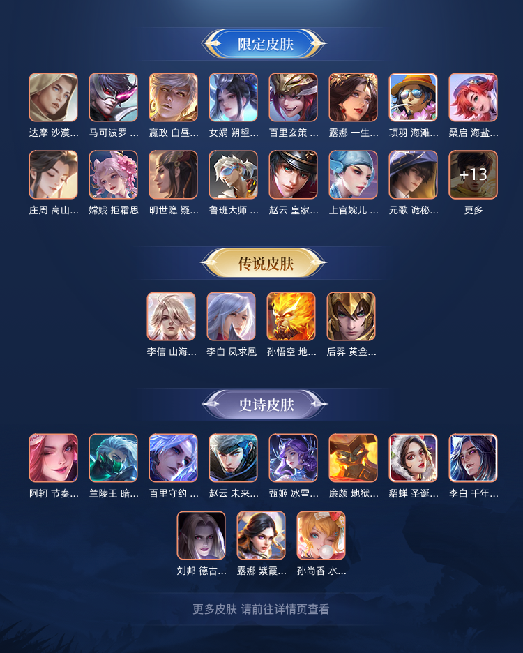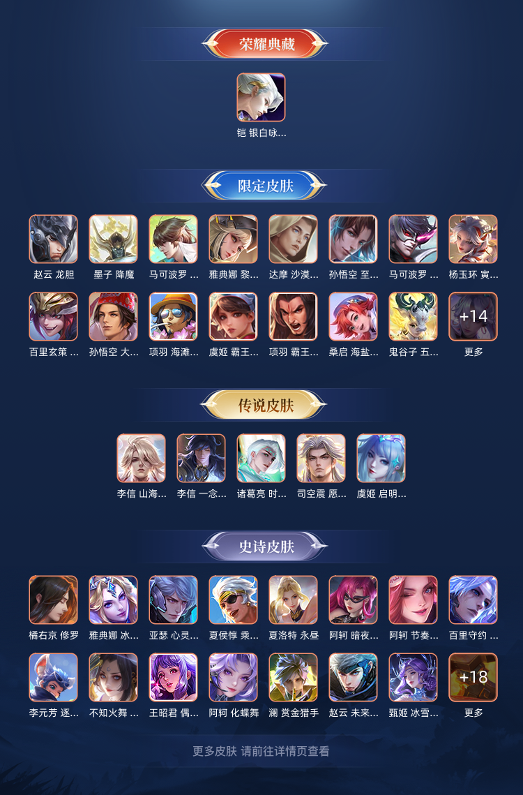 【V7 180皮】100多个皮肤,100多个英雄,11个传说,55个史诗。