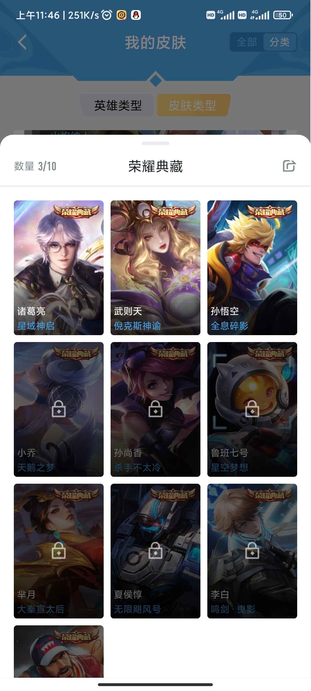 【V7 293皮】白虎志 岱宗 一些限定皮肤 全英雄 全铭文 200多皮肤 荣耀王者